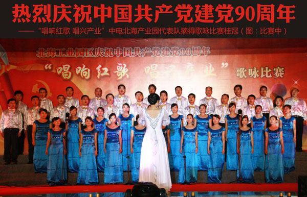 熱烈慶祝中國共產(chǎn)黨建黨90周年<br>——“唱響紅歌 唱興產(chǎn)業(yè)”中電北海產(chǎn)業(yè)園代表隊摘得歌詠比賽桂冠