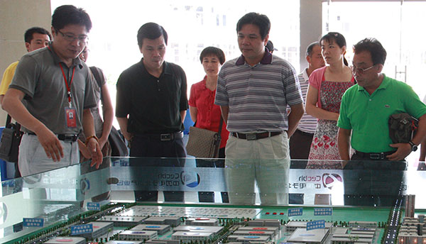 2011年7月5日上午,貴港市科技局劉慶強局長帶領(lǐng)干部職工一行30余人,在北海市科技局黃健局長等陪同下,來到園區(qū)北部灣電子信息科技企業(yè)孵化器參觀考察。
