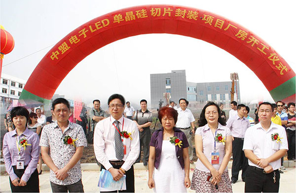 2011年10月28日上午,廣西北海中盟電子科技開(kāi)發(fā)公司3號(hào)廠(chǎng)房舉行了隆重的開(kāi)工儀式,該廠(chǎng)房建筑面積11000平方米,預(yù)計(jì)2012年7月底投入使用,主要從事LED封裝、單晶硅切片封裝、太陽(yáng)能路板生產(chǎn)。