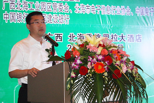 ' 作為本次論壇邀請(qǐng)的演講嘉賓,中國(guó)電子集團(tuán)控股有限公司副總經(jīng)理、北海市電子信息行業(yè)協(xié)會(huì)會(huì)長(zhǎng)賀海華在論壇上做了題為“招商扶商 合作共贏 助力北海電子信息產(chǎn)業(yè)發(fā)展”的主題演講。賀海華會(huì)長(zhǎng)向與會(huì)嘉賓介紹了北海市電子信息行業(yè)協(xié)會(huì)的基本情況和開(kāi)展的重點(diǎn)工作,并分享了作為會(huì)長(zhǎng)單位的中國(guó)電子北海產(chǎn)業(yè)園在過(guò)去幾年來(lái),搭建平臺(tái)、招商扶商,助力實(shí)現(xiàn)了北海電子信息產(chǎn)業(yè)跨越式發(fā)展。未來(lái),協(xié)會(huì)及會(huì)長(zhǎng)單位將繼續(xù)完善產(chǎn)業(yè)發(fā)展環(huán)境,搭建政企、銀企等多方溝通平臺(tái),合作共贏,助力北海千億元電子信息產(chǎn)業(yè)發(fā)展。