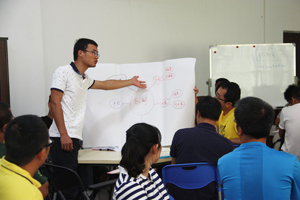 體驗(yàn)課由中國地質(zhì)大學(xué)博士、子謙國際創(chuàng)業(yè)教育學(xué)院首席專家、河北地質(zhì)大學(xué)創(chuàng)新創(chuàng)業(yè)教育學(xué)院執(zhí)行院長與教學(xué)總監(jiān)朱燕空作為主講。體驗(yàn)課以新常態(tài)下雙創(chuàng)發(fā)展及市場拓展為背景,就創(chuàng)業(yè)思維內(nèi)涵、體驗(yàn)創(chuàng)業(yè)思維之旅、創(chuàng)業(yè)思維與管理思維對比,與學(xué)員們探討交流雙創(chuàng)發(fā)展之路,布置各小組“制造未來”任務(wù),設(shè)想了創(chuàng)業(yè)之路所遇到各種機(jī)遇與困阻。朱院長表示,創(chuàng)業(yè)成長期,大部分創(chuàng)業(yè)青年不缺乏目標(biāo)和想法,著實(shí)選擇一個有效的路徑去實(shí)現(xiàn),路徑有很多,每條路徑都代表著一種可能性,并且充滿了不確定性,關(guān)鍵在于如何找到有效的路徑,需要我們?nèi)バ袆印⒎此己驼{(diào)整;而不是過多的詳細(xì)規(guī)劃,注重逐步執(zhí)行。面臨不確定性,朱院長結(jié)合自身創(chuàng)業(yè)經(jīng)驗(yàn),與學(xué)員們探討分享創(chuàng)業(yè)新思維與企業(yè)管理模式,并運(yùn)用了大量案例對市場拓展做指導(dǎo)。課堂最后,朱院長與學(xué)員逐個交流創(chuàng)業(yè)相關(guān)熱門話題。