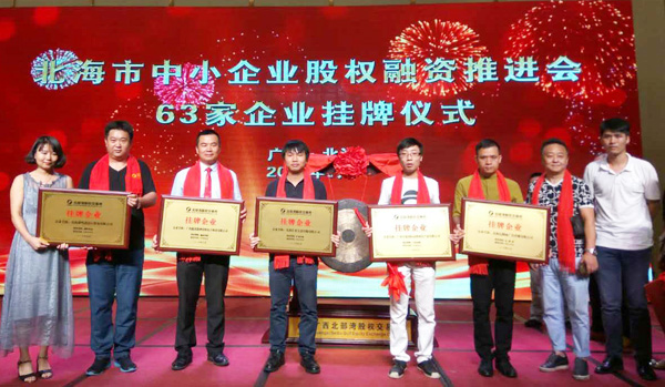 2016年9月22日,北海市中小企業(yè)股權(quán)融資推進(jìn)會(huì)順利召開(kāi),北部灣孵化器企業(yè):廣西鑫盾戰(zhàn)神安防電子科技有限公司、北海匯材文化傳媒有限公司、北海瀟鳴進(jìn)出口貿(mào)易有限公司、北海億圓雨廣告?zhèn)髅接邢薰驹诒辈繛彻山凰晒炫啤?/p>