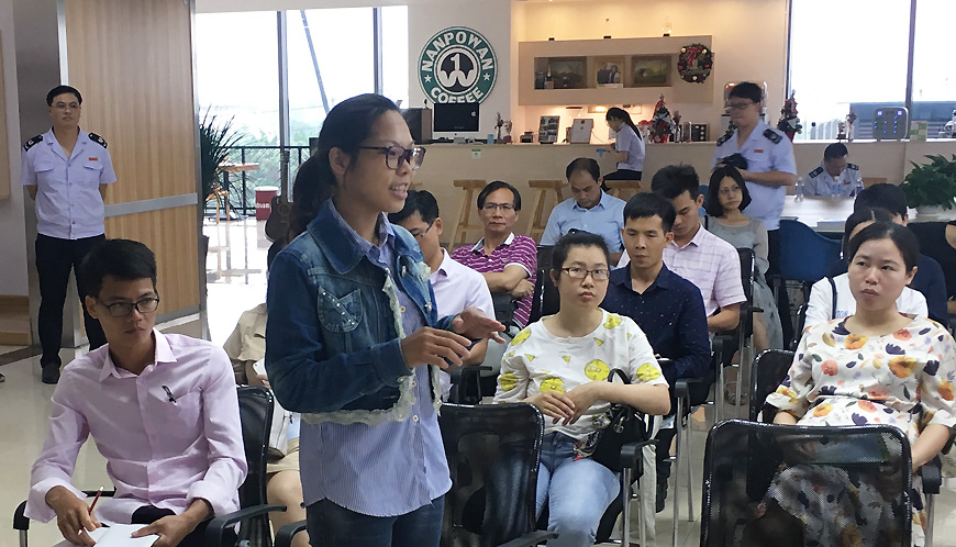 企業(yè)人員認真聽講,主動咨詢業(yè)務問題