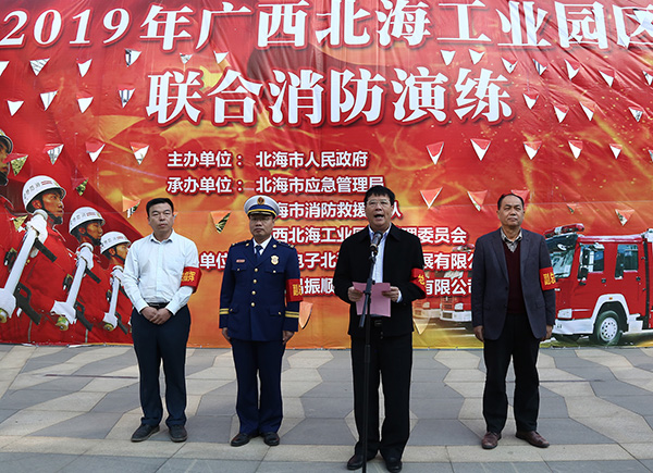 北海市委常委、常務(wù)副市長(zhǎng)陳維致辭并宣布消防演練正式開(kāi)始