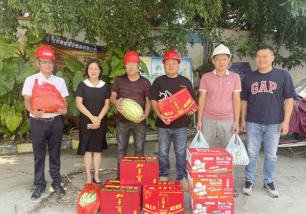 2023年7月19日下午,園區(qū)項目中電春海湖、中電海灣國際建設現場烈日炎炎,受集團公司領導的委托,中國電子北海產業(yè)園公司副總經理劉曉娟到項目建設現場,為高溫天氣下堅守在一線的工作者送去了清涼和慰問,囑咐大家在高溫天氣下工作要做好防暑降溫措施,合理安排工作時間。